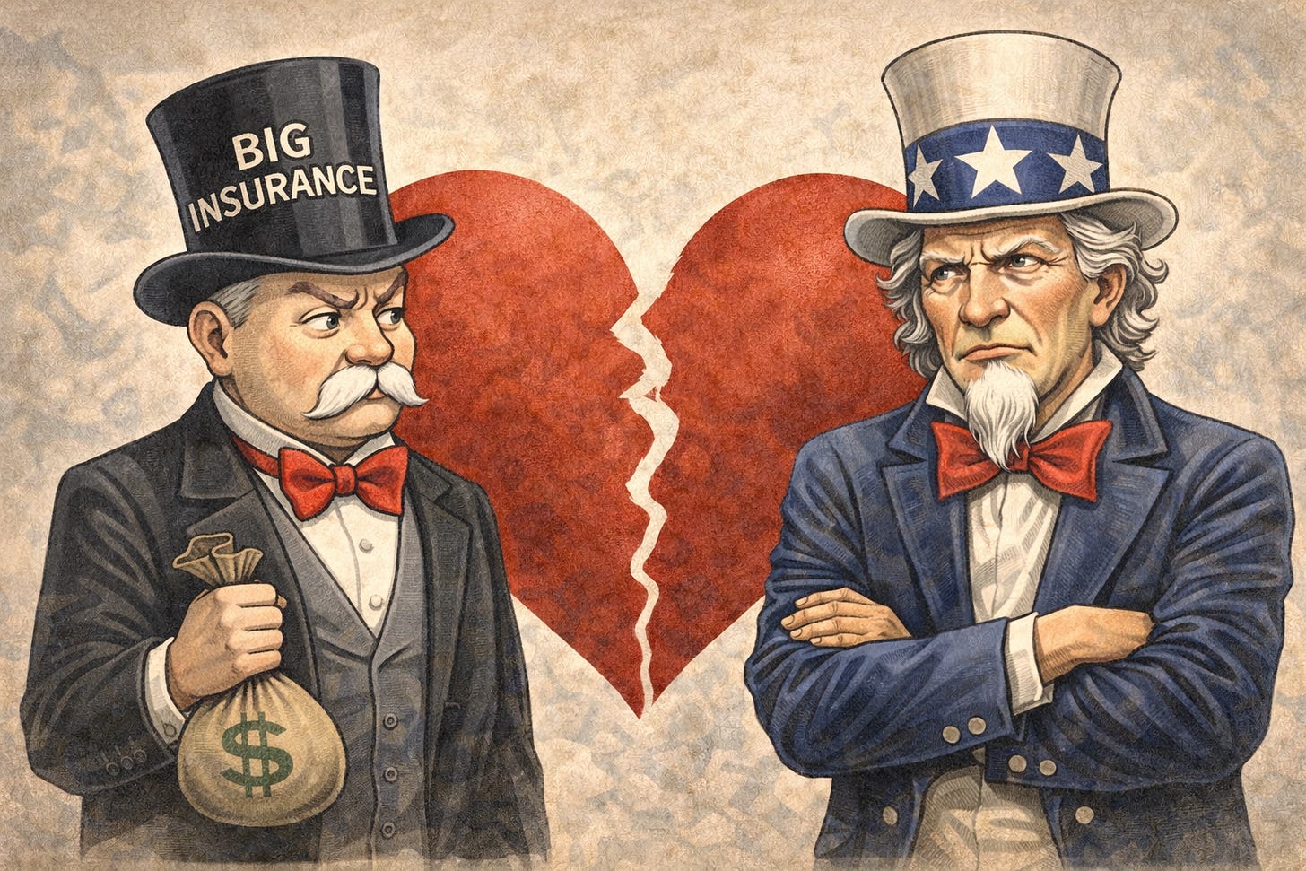 They are now rightly calling out the middlemen in this business as the reason why premiums are so unaffordable – insurance companies that act like Bond villains.