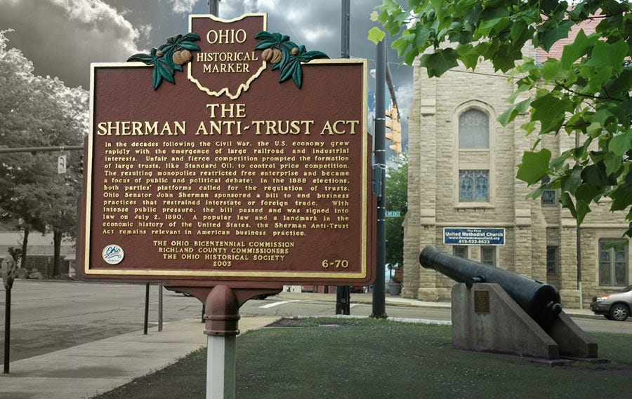 First, a primer on the Sherman Act, which is America’s original “stop acting like a cartel” law. If you’re conspiring to rig the market, fix prices, carve up territory, or otherwise strangle competition, congratulations - you may have just volunteered for federal court. It’s the statute that tells monopolists and their little friends: compete or get enjoined.